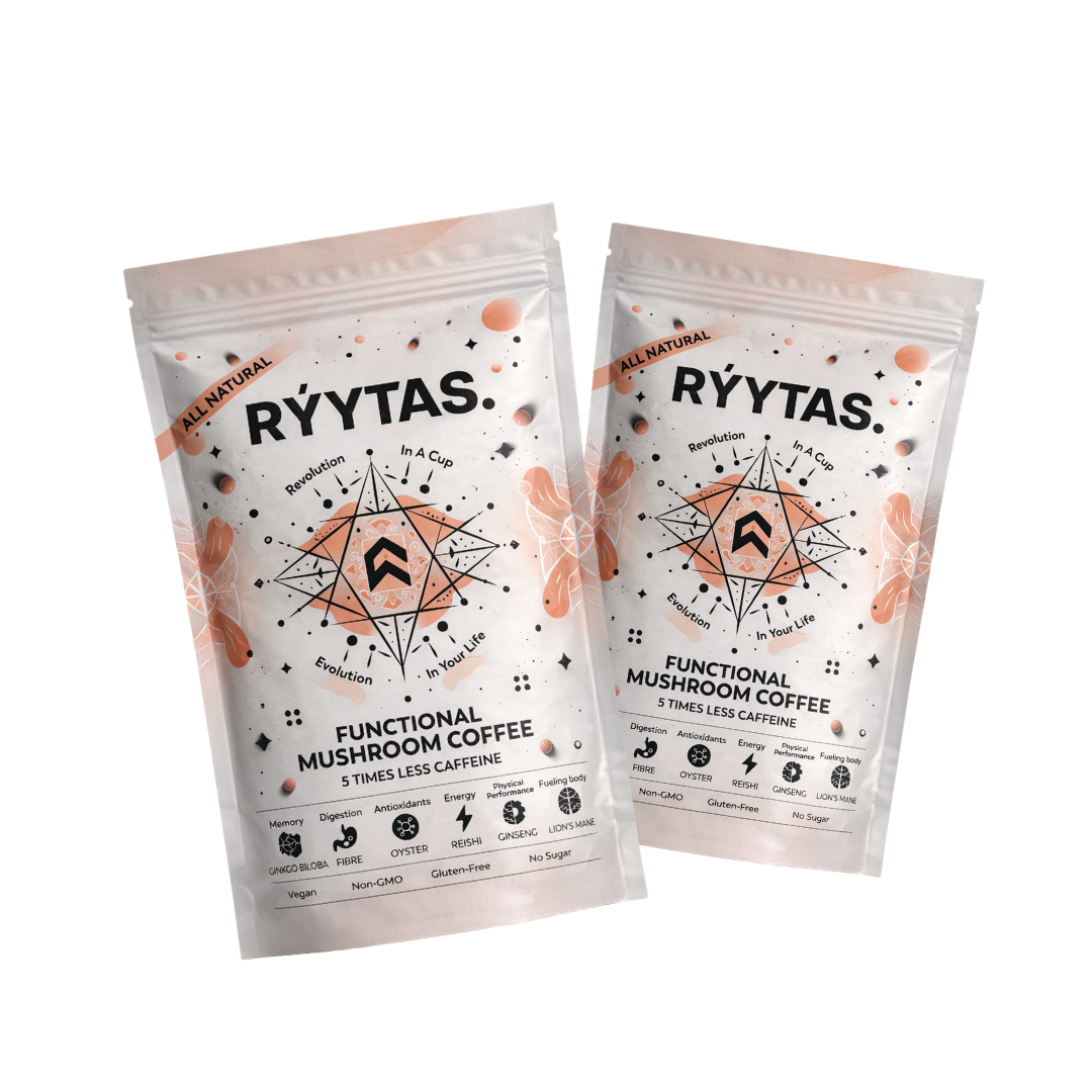 Grybų kava – tai naujos kartos funkcinis gėrimas, jungiantis tradicinės kavos skonį su adaptogeninių grybų nauda. RÝYTAS grybų kava su Lion's Mane ir Reishi teikia švelnesną energiją be nervingumo, gerina fokusą ir palaiko imunitetą. Atraskite, kodėl tūkstančiai lietuvių renkasi grybų kavą kaip savo kasdienę rutiną.